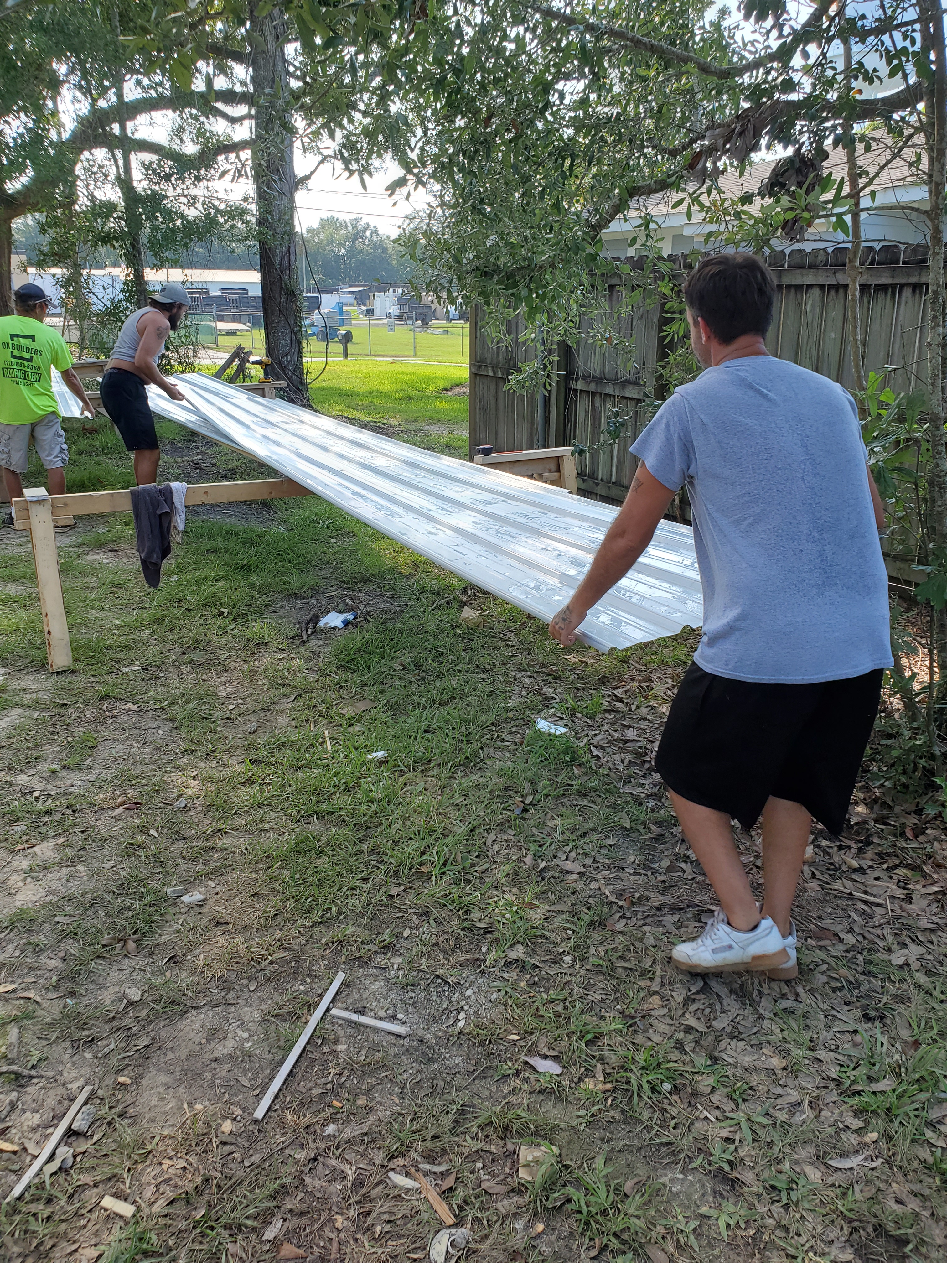 The photos below show us in the process of creating a cricket that will divert rainwater away from the chimney which has been leaking.